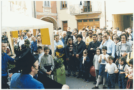 Il Mago Silverio impegnato in una Fiera come attrazione per uno stand commerciale. |